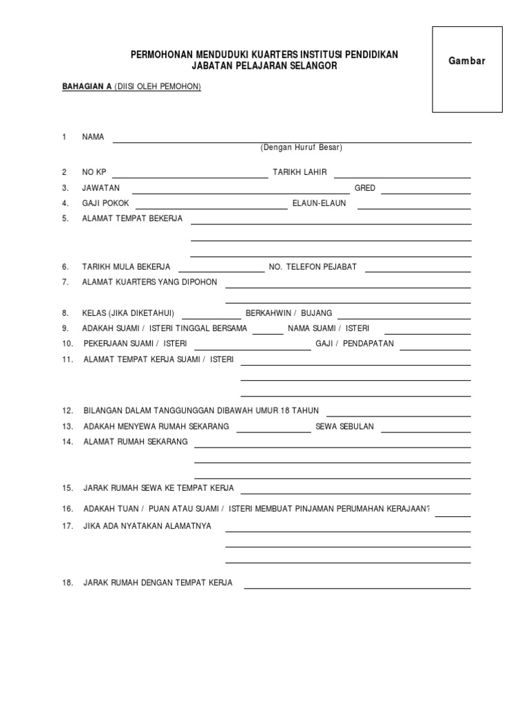 Borang Permohonan Menduduki Kuarters Ppd Petaling Utama
