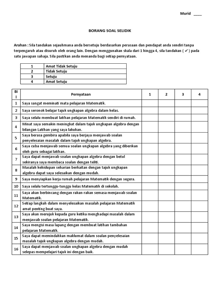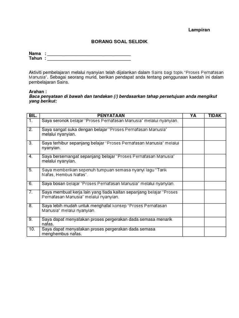 513 Soal selidik Borang soal selidik. Contoh Soal Selidik Kajian Tindakan.