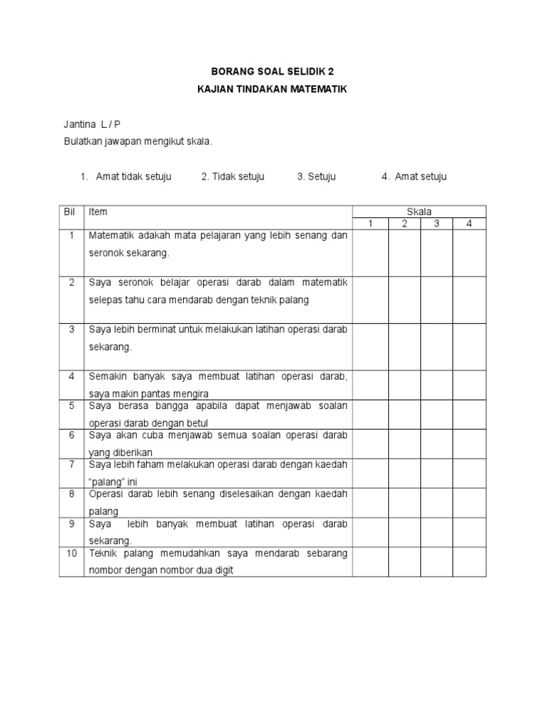 Contoh Soal Selidik Kajian Tindakan Pdf